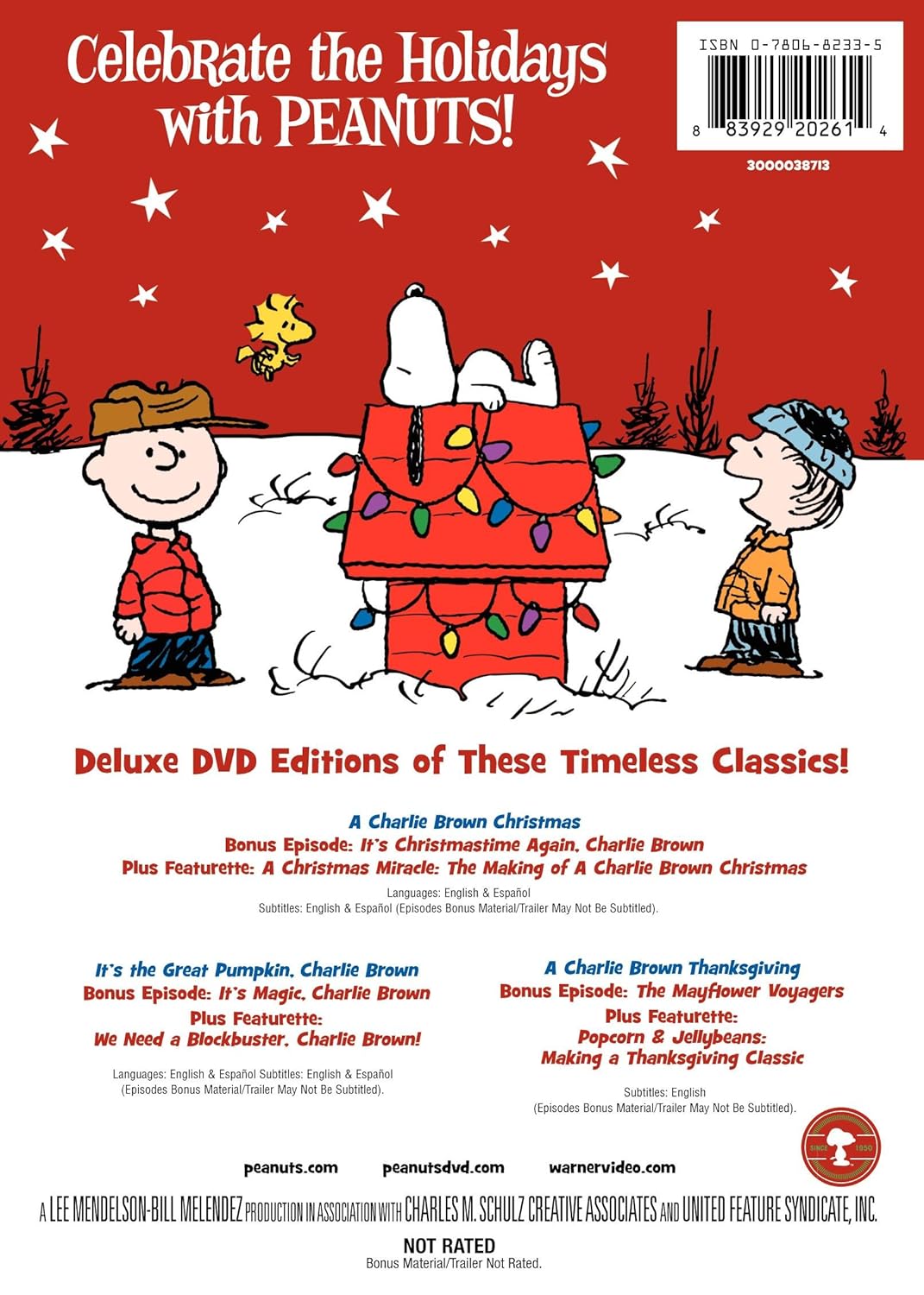 Everyones favorite Peanuts Holiday titles all in one set with the All-new Deluxe Editions! All the content including EC and bonus episodes, from the following new Peanuts Deluxe Edition releases: Its the Great Pumpkin, Charlie Brown A Charlie Brown Thanksgiving A Charlie Brown Christmas.