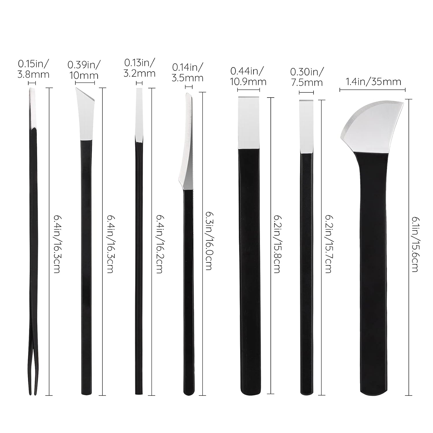 【Combination of 7pcs Knives】7 kinds of various blades help to solve different pedicure treat-ment with ease. Product list: 1*half-round blade knife, 1*adz knife, 1*strip knife, 1*scraping knife, 1* inclined knife, 1* ingrown nail knife, 1*double end fork knife, 1*PU storage bag