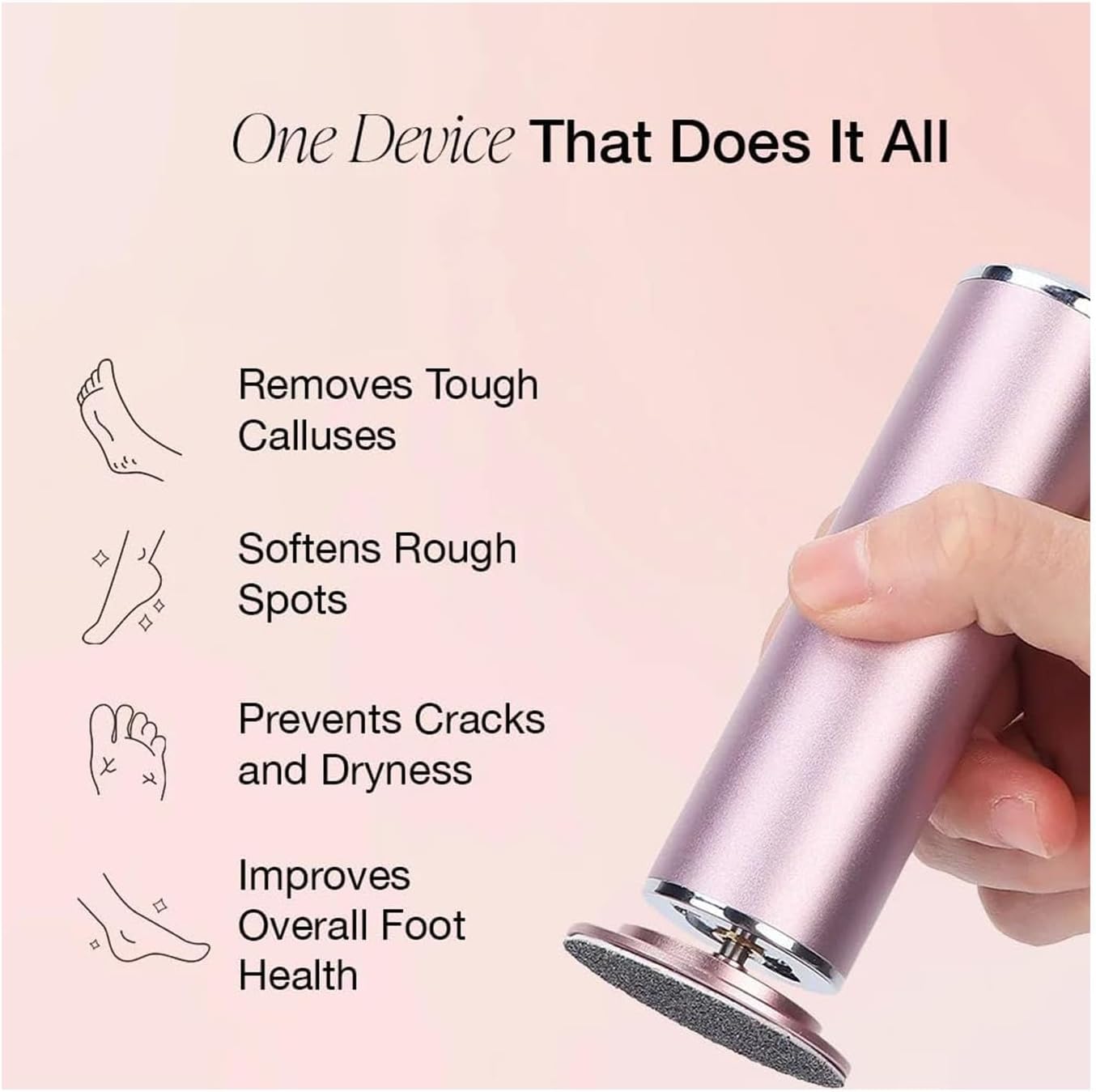 【Easy to Use and Portable】This small and stylish Pedifairy Electric Foot Callus Remover is easy to carry and use anywhere. With its compact design, you can easily use it at home or on the go, ensuring that your feet always stay smooth and beautiful wherever you are.
