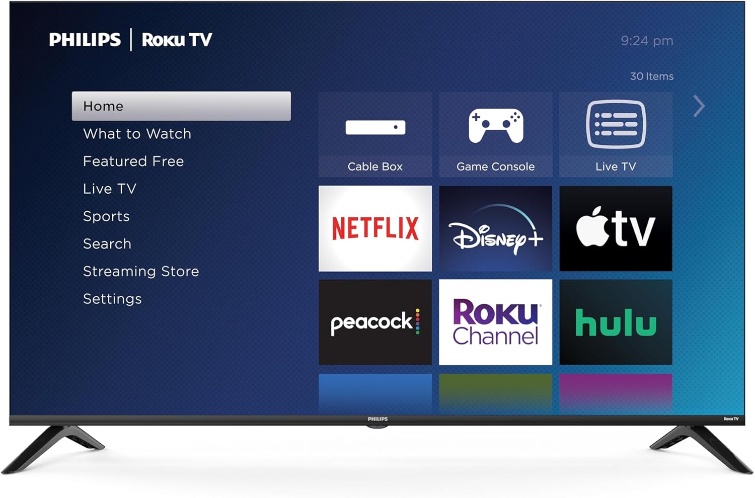 Philips Roku TV is smart TV made simple. Get what you want to watch with a simple home screen, easy-to-use remote, and automatic software updates. With an elegant design and beautiful display, experience a whole new level of entertainment.