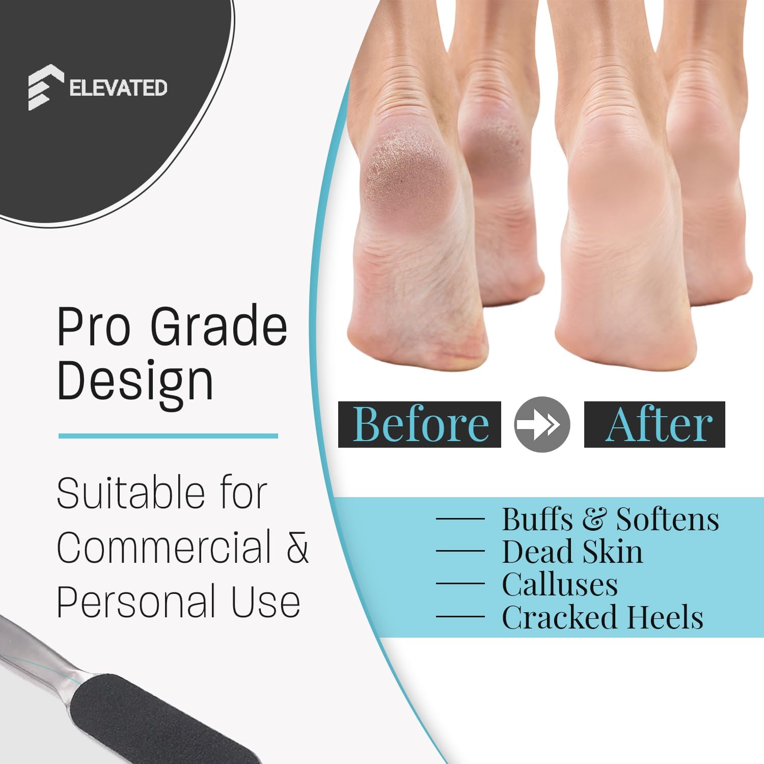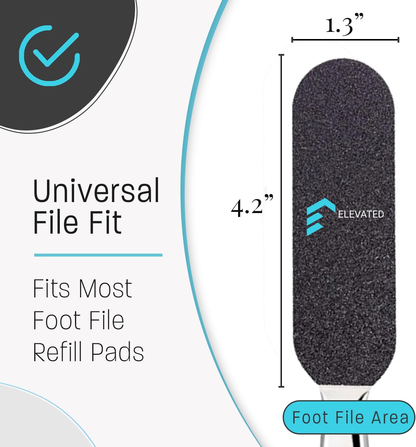 WORKS WITH FOOT FILE REFILLS: The Elevated stainless pedicure file works with the Elevated 100 grit and 60 grit foot file refill replacement pads, as well as most other foot file refills.