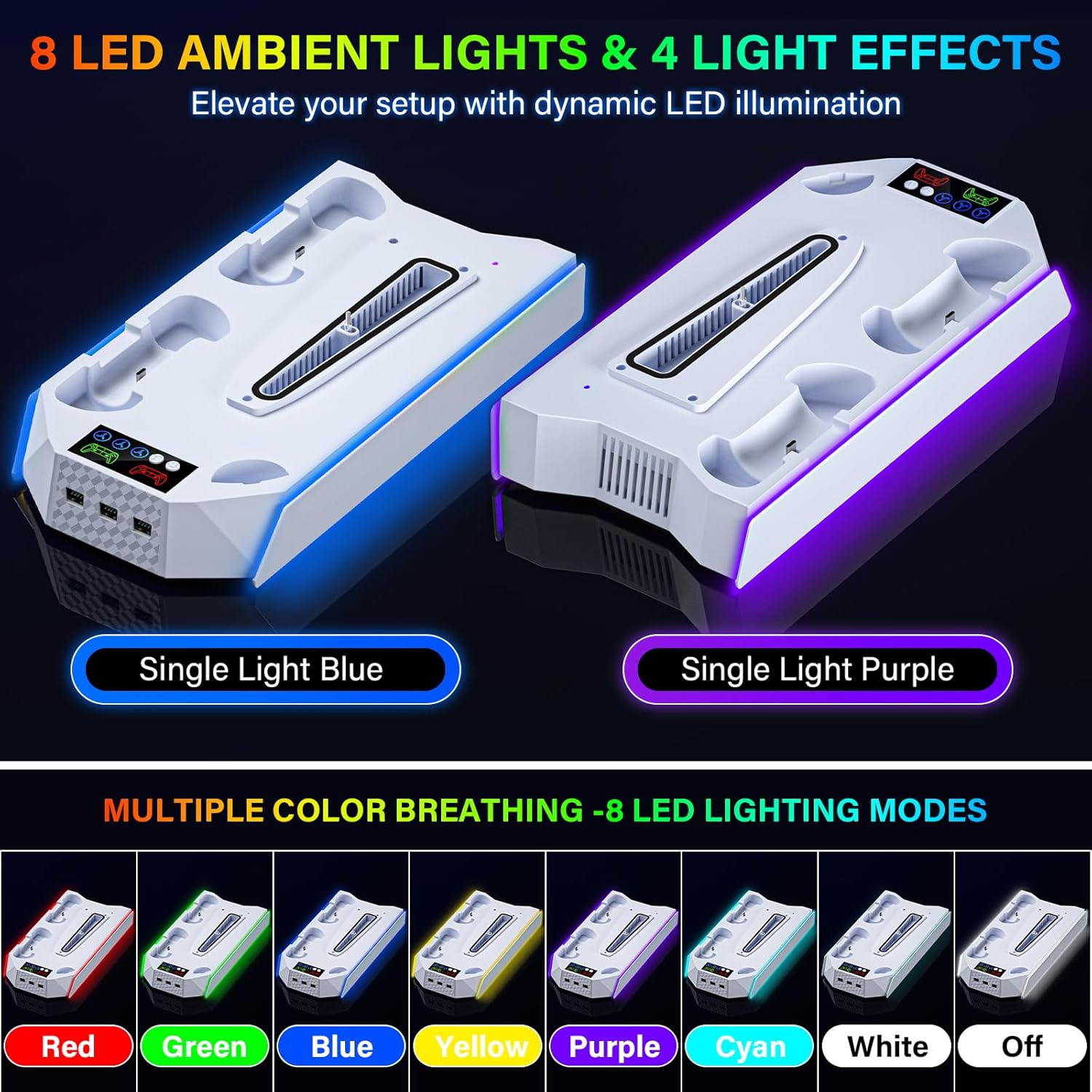 Advanced Protection For Playstation 5 Controller – Adopted intelligent circuit protection chip, the ps5 slim docking station with cooling fan protects ps5 controllers from overcharging, overheating, overcurrent, overvoltage and short circuits, ensuring controllers’ safety even charged overnight. The ps5 slim controller charger dock will charge the controller in trickle charging mode when the controller battery is charged up to 90%, ensuring the optimum health and longevity of ps5 controller