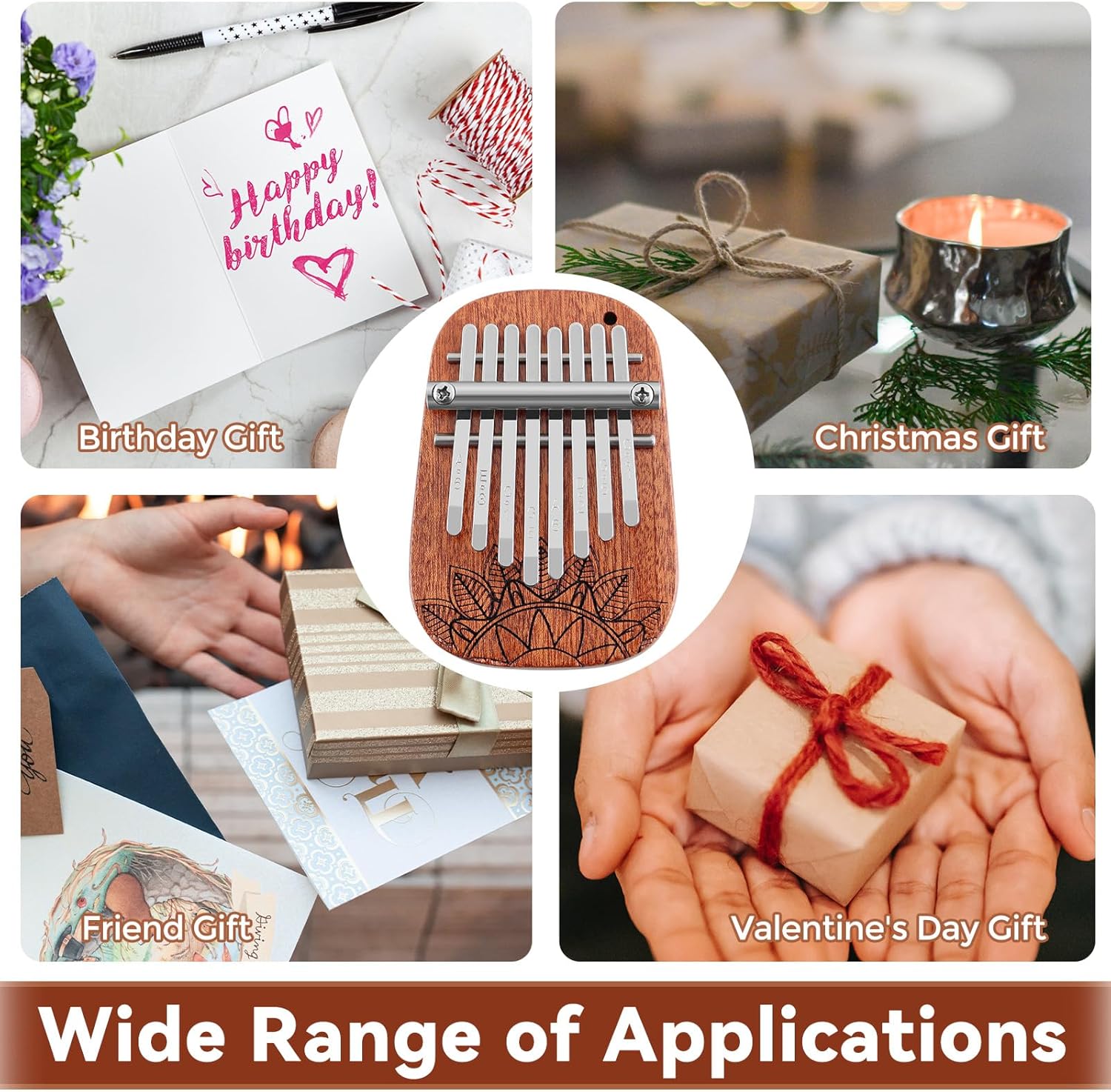 Excellent Gift :Mini 8 keys thumb piano is a portable and creative musical instrument that can be used in schools, parties, performances, outdoor and leisure, etc. This is the perfect holiday gift for kids, friends, family, and music lovers