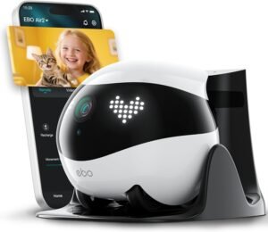 Product Description MOVABLE HOME ROBOT & APP CONTROL: Equipped with tracked wheel design, EBO Air 2 pet camera robot delivers smooth roaming to see your...