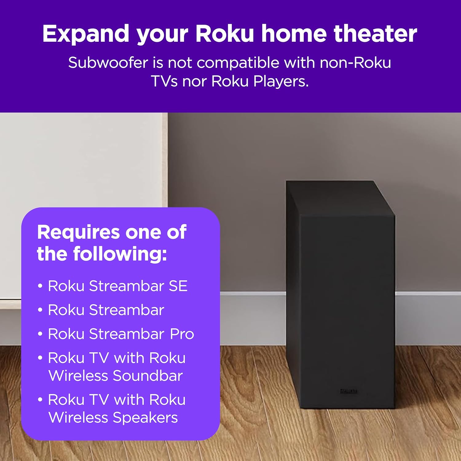 Exclusively for Roku Audio: Add heart-pounding bass to your Roku Streambar, Roku Streambar Pro, or Roku Wireless Speakers—only works with Roku Audio, not Roku players or other sound systems