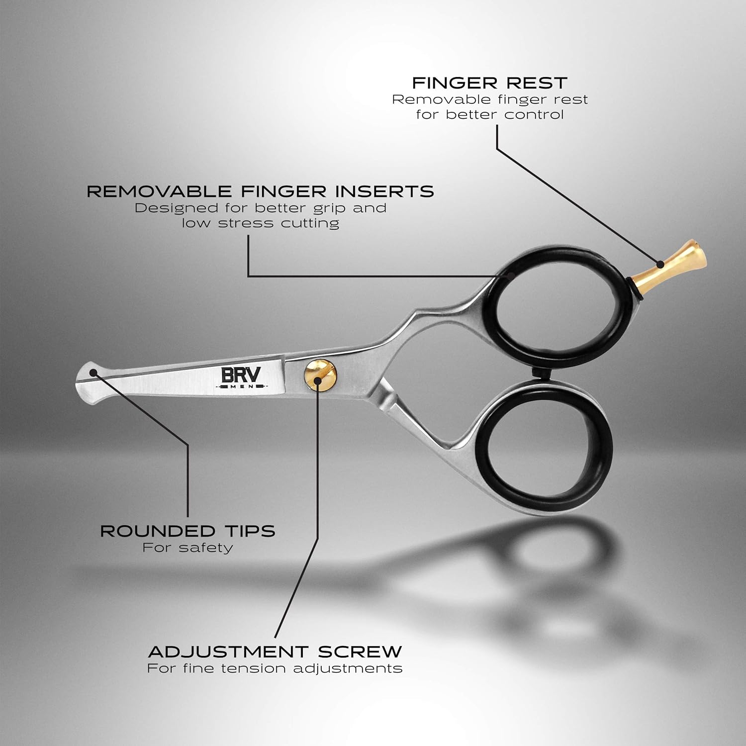 A TOOL IN A CLASS OF ITS OWN – Grooming is a personal expression as much as a responsibility. That’s why every tool in your arsenal reflects you as a man. Available in silver or black with brass pins BRV MEN Blunt-Tip Scissors effortlessly blend function with elegance. The gold brass pins over a matte finish stainless steel body display the quiet sophistication that you or someone close to you deserves. Better yet gift a pair to your son to pass your grooming knowledge on to the next generation?