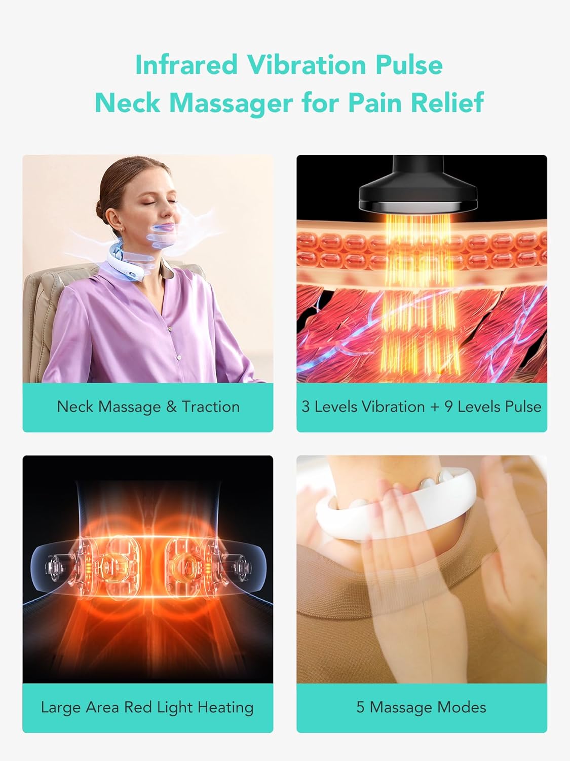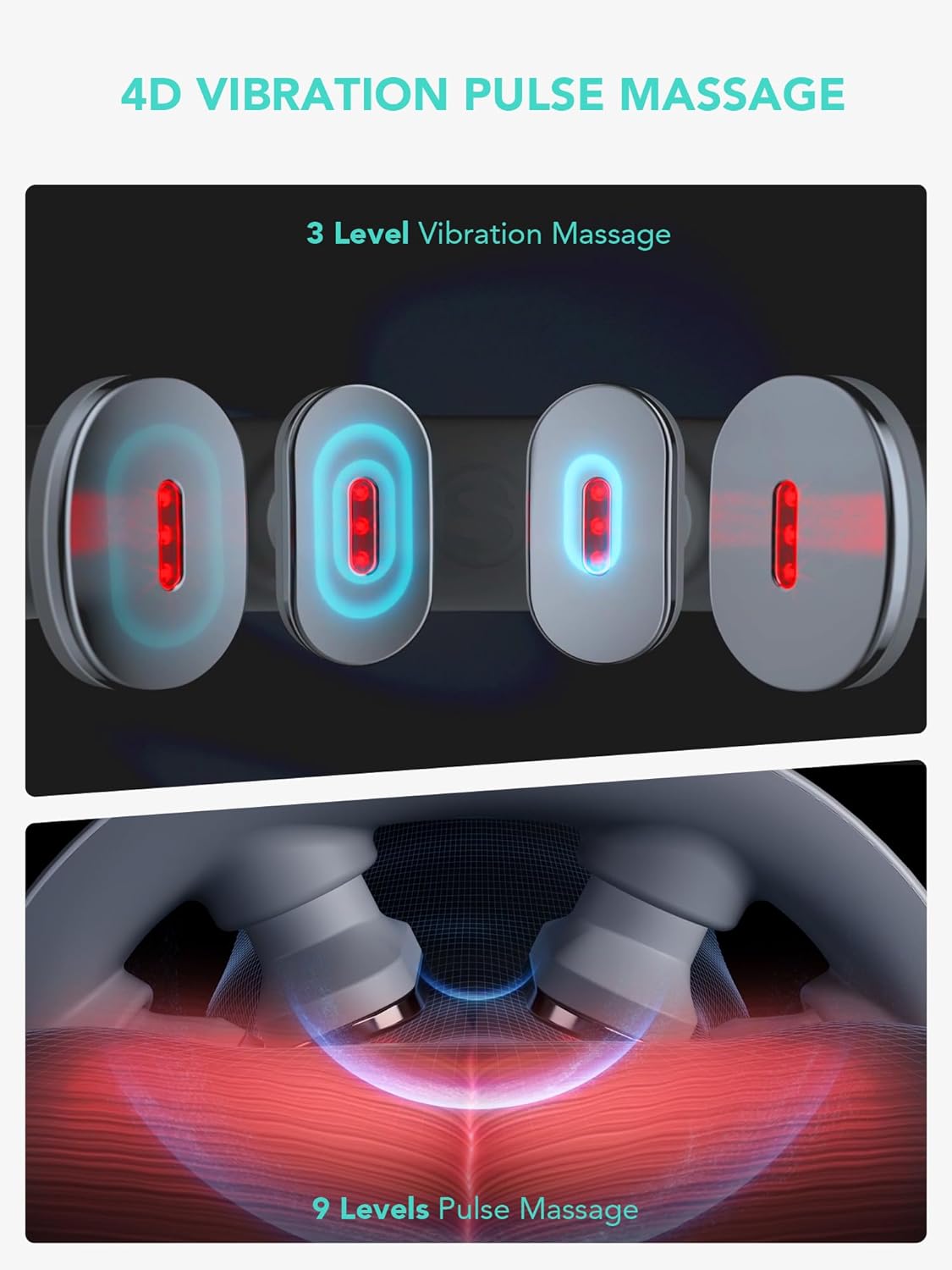 𝗩𝗶𝗯𝗿𝗮𝘁𝗶𝗻𝗴 𝗣𝘂𝗹𝘀𝗲 𝗧𝗿𝗮𝗰𝘁𝗶𝗼𝗻 𝗡𝗲𝗰𝗸 𝗠𝗮𝘀𝘀𝗮𝗴𝗲𝗿 – SKG K5-3 PRO Neck Massager has 4 ergonomic 3D dual-curved massage heads for a larger massaging area,Vibration shallow massage, other deep massage; the first micro-traction mode to work out the neck muscles, preventing muscle strain and relaxing the neck muscles.