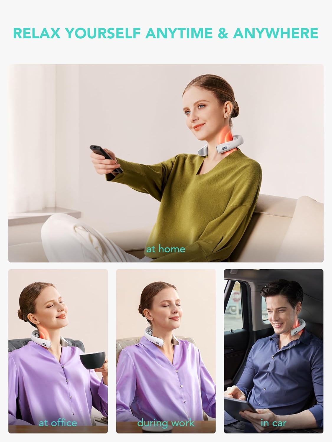 𝗣𝗲𝗿𝗳𝗲𝗰𝘁 𝗦𝗼𝗹𝘂𝘁𝗶𝗼𝗻 𝗙𝗼𝗿 𝗨𝗿𝗴𝗲𝗻𝘁 𝗥𝗲𝗹𝗮𝘅𝗮𝘁𝗶𝗼𝗻 – Portable rechargeable neck massager is designed with unique omega shape, the whole machine is only about 125g, convenient for you to carry with you at any time. 1000mAh high-capacity battery, can be used continuously for 90 minutes; Cordless design allows you to enjoy the massage anytime and anywhere.