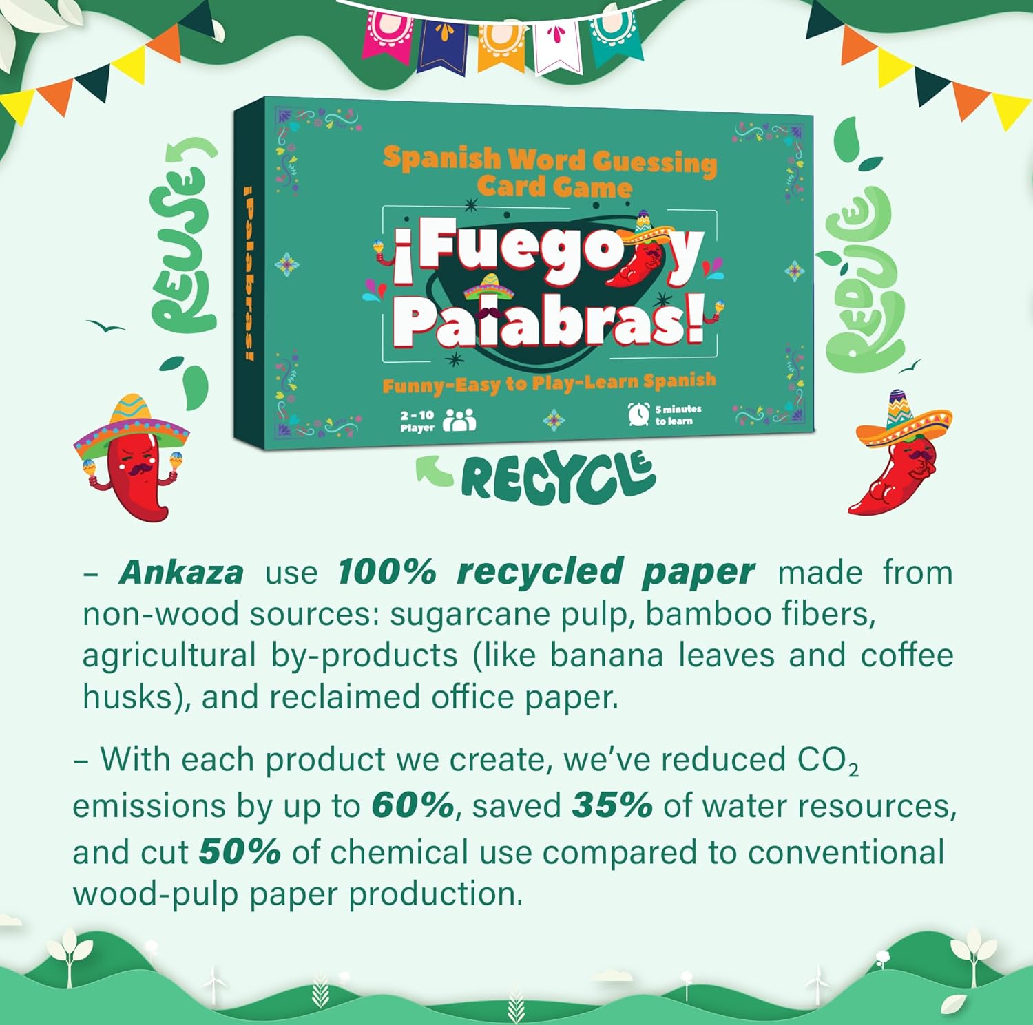 👨‍👩‍👧‍👦 Perfect for Any Occasion – Bring it to family game night, classrooms, language clubs, or college party, rager, dorm party – ¡Fuego y Palabras! lights up every gathering. Designed for 2–10 players, it’s a versatile hit wherever good vibes and great company come together. You don’t need to be good at Spanish to play.