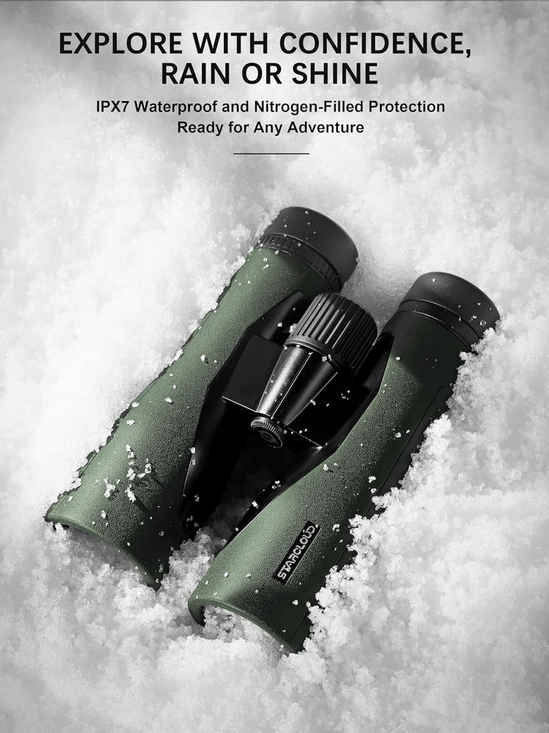 Durable and Waterproof Construction: Built to withstand rugged outdoor use, these binoculars feature a robust construction that is both waterproof and fog-proof, ensuring reliable performance in various weather conditions.