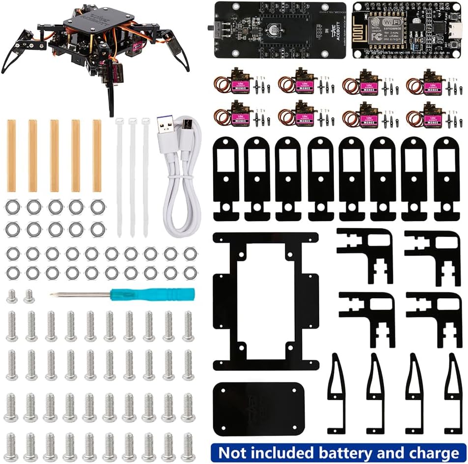 Easy for Beginner: Designed for children ages 8 and up, this ACEBOTT cool spider robot features ESP8266 motherboard controls and customized rudder, making programming easy to learn. With 8 comprehensive lessons, children are systematically guided to master programming and electronic hardware principles, fostering hands-on ability and innovative thinking.