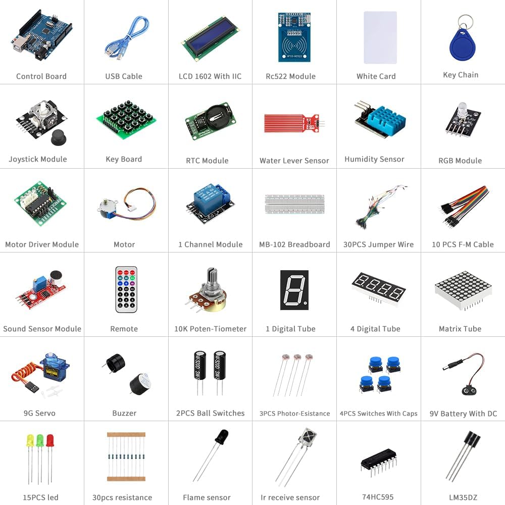 4.Include High Quality microcontroller board and USB cable, 100% compatible with Arduino UNO R3