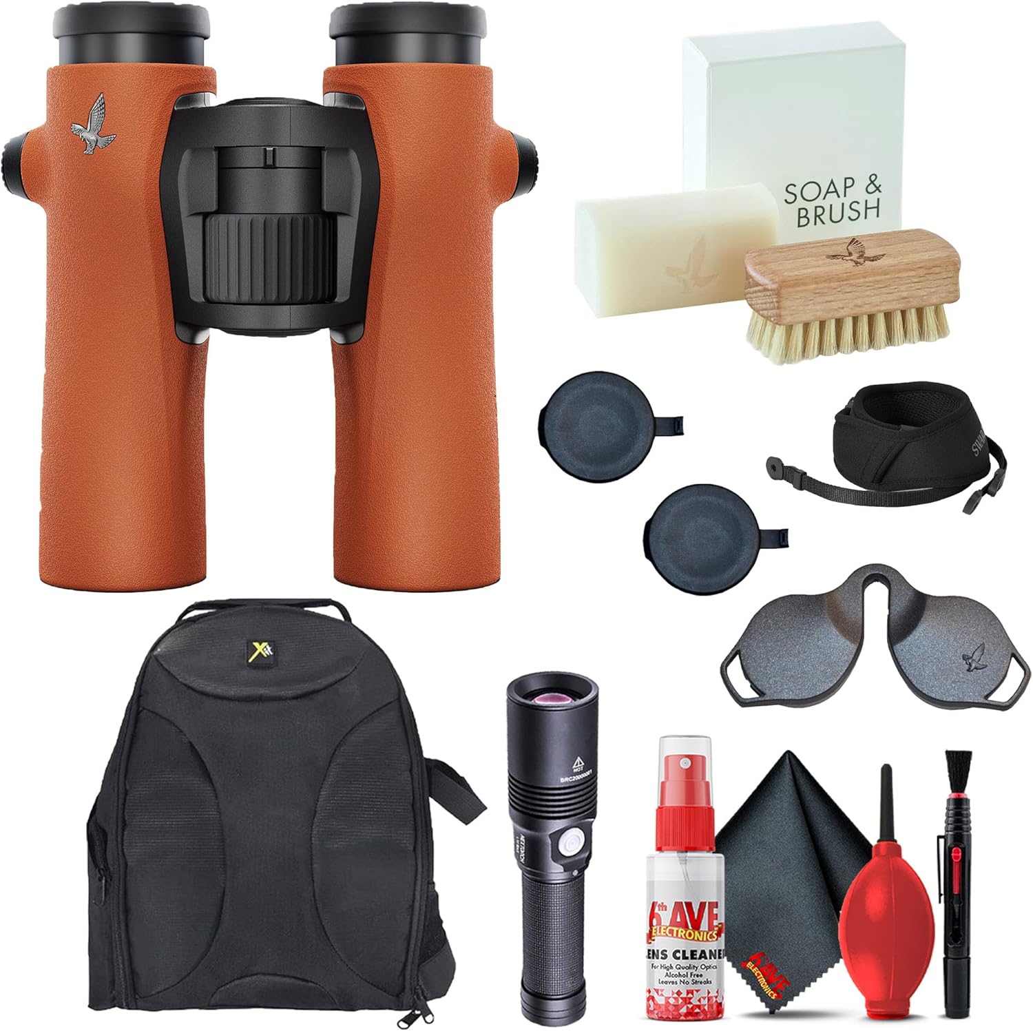 Bundle Items Include: Swarovski 8×32 NL Pure Binoculars (Burnt Orange) + Padded Backpack + Flashlight + Cleaning Kit