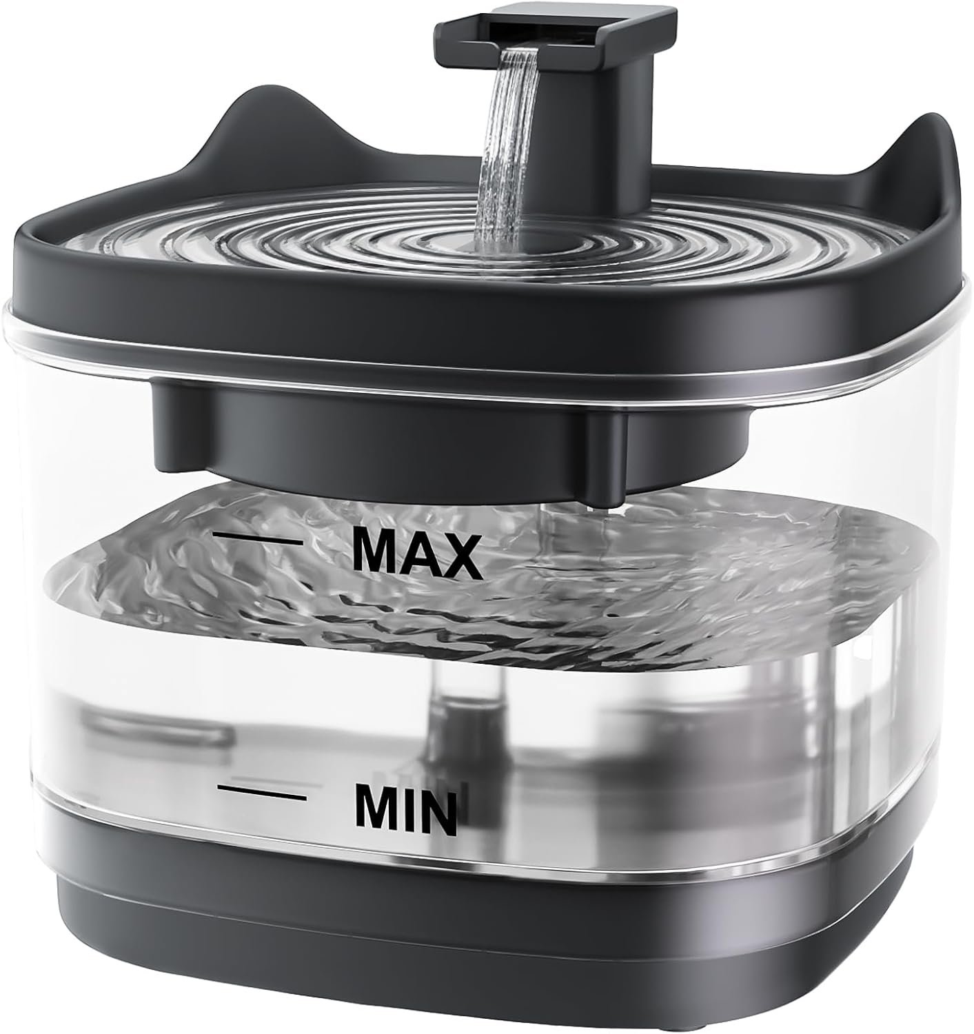 Price: (as of - Details) The Catt Mini Flower Fountain is a fresh water drinking bowl with basic filter. This is a compact 50.7 fluid ounce flower fountain that includes a filter pad. Your cat can only access fresh, filtered water. This fountain is roughly 4 inches off the ground. Smaller than