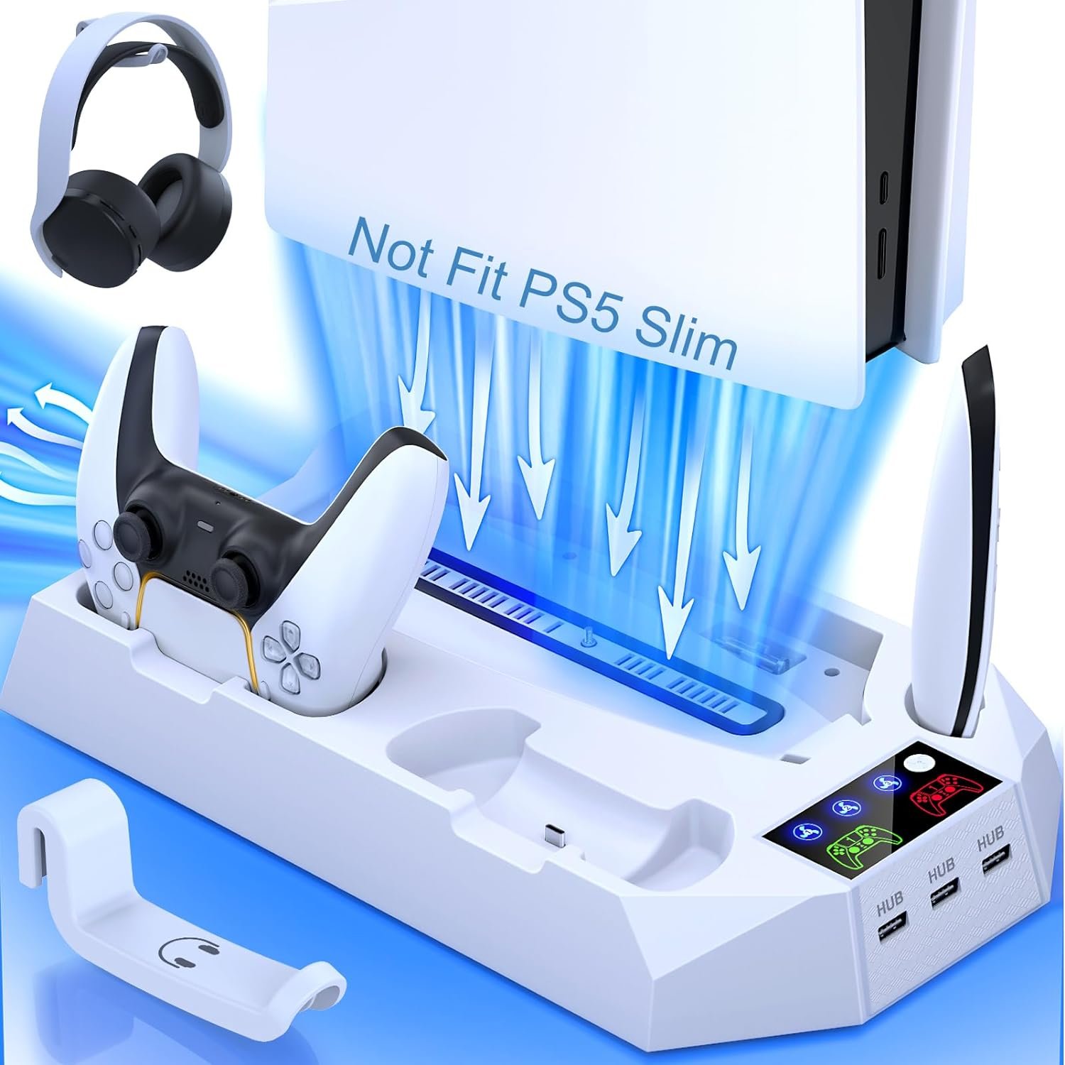 PS5 Stand with Cooling Station for PS5 Controller Charging Station fo…