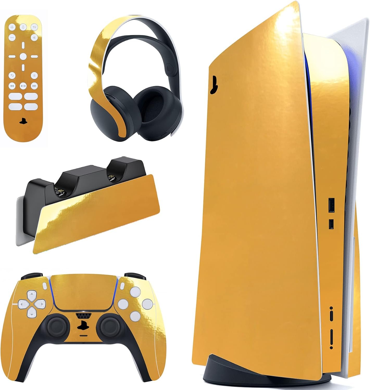 PlayVital Chrome Gold Glossy Full Set Skin Decal for ps5 Console Disc…