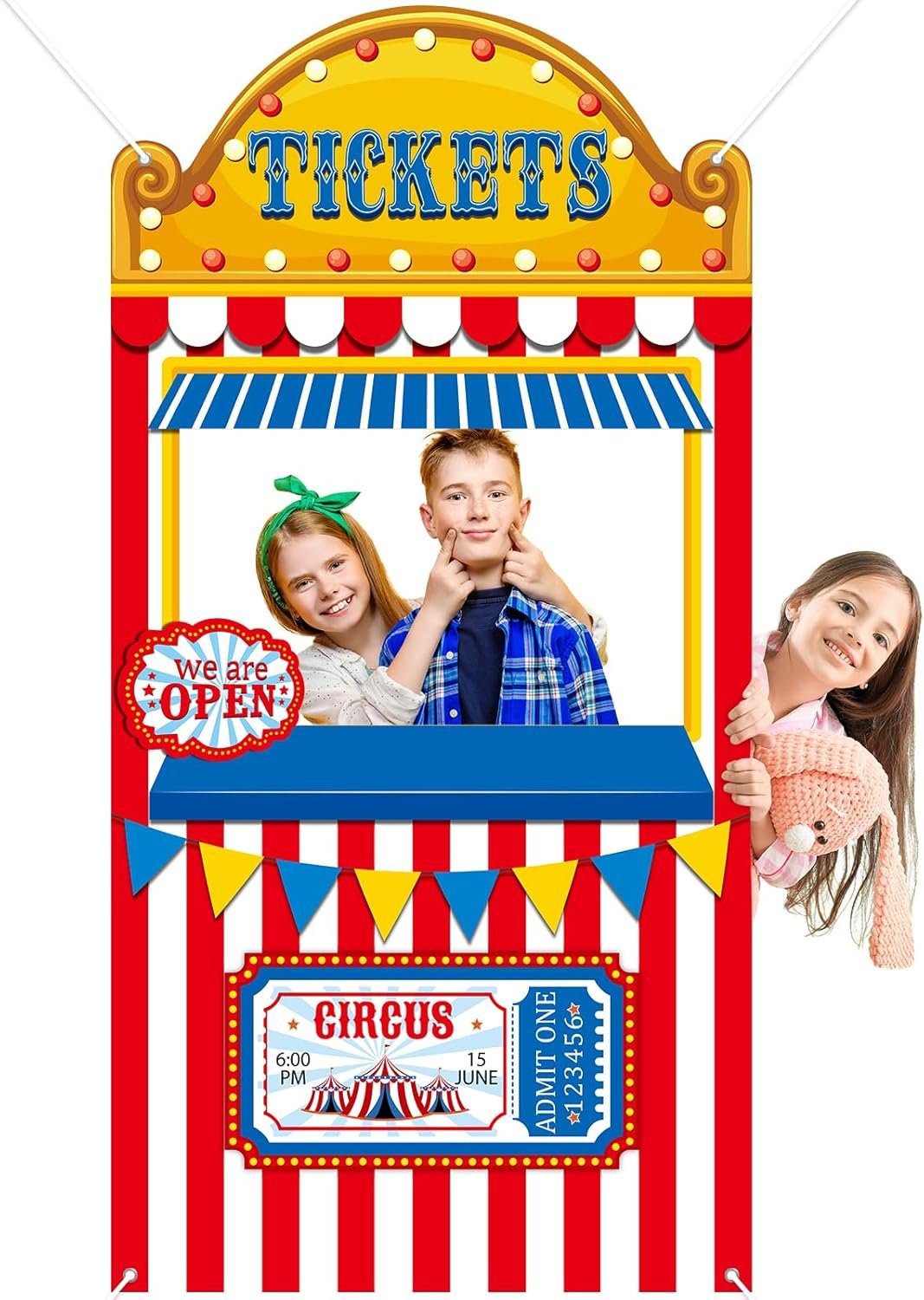 Beistle 3-D Circus Ticket Booth Prop – Large Cardboard Carnival Standee with Classic Marquee Sign, Circus-Themed Photo Booth and Fair Party Decoration, Freestanding Display for Birthdays, 6’1” x 35¼”