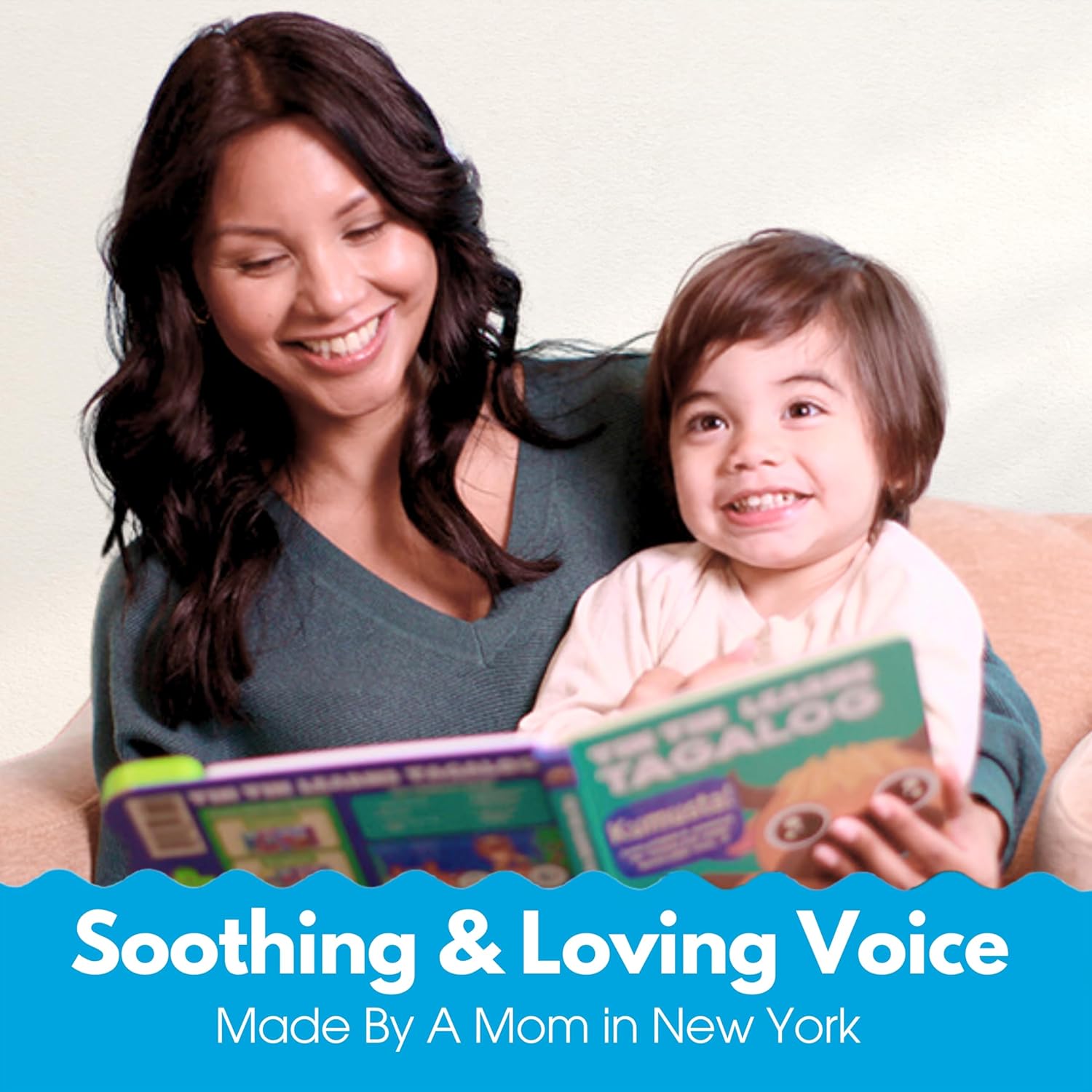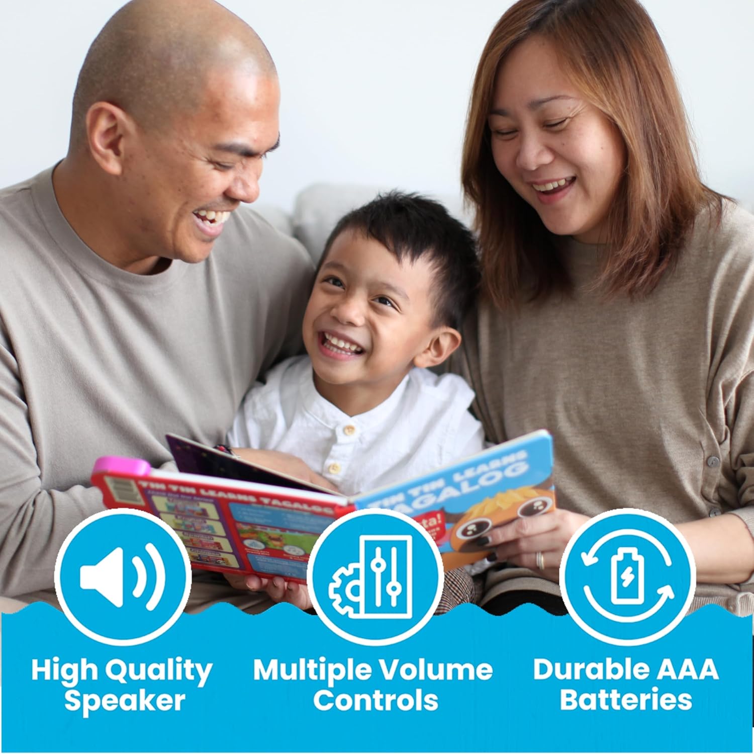 SOOTHING & NATURAL VOICE. Unlike many sound books on the market, TIN TIN LEARNS TAGALOG features a real Filipino mom singing with warmth and calm. These learning Filipino books for kids in Tagalog are perfect for toddlers and babies. Each children’s Tagalog song is sung twice with music—no robotic or electronic-sounding voices. At the press of a button, kids enjoy clear, high-quality audio in Tagalog. A must-have Tagalog baby book, Filipino baby book, and bilingual Tagalog book—ideal for families introducing their children to their first Filipino words or seeking Tagalog books for toddlers.