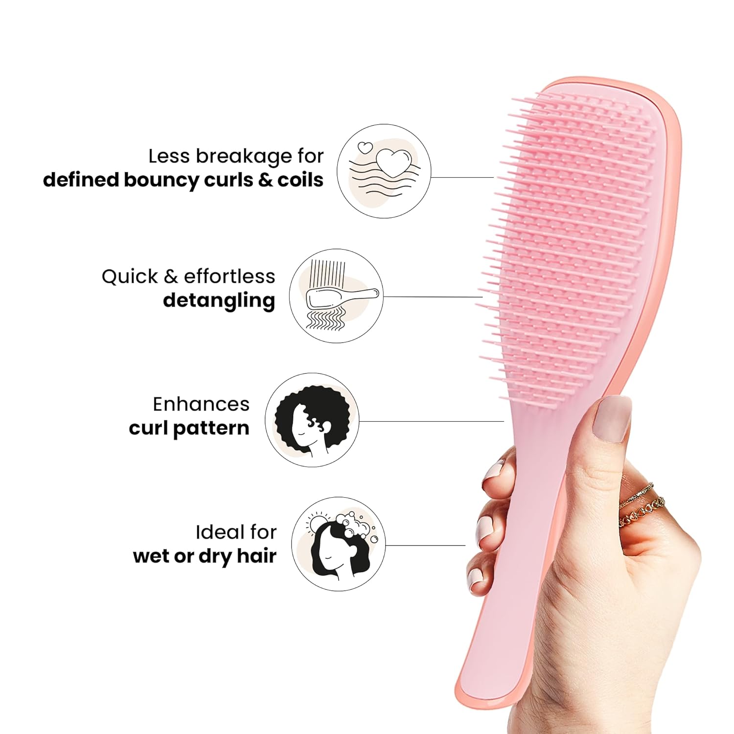 Innovative Design: Featuring our patented two-tiered teeth technology with longer, firmer teeth that are kind to curls but tough on tangles and shorter teeth that reduce frizz