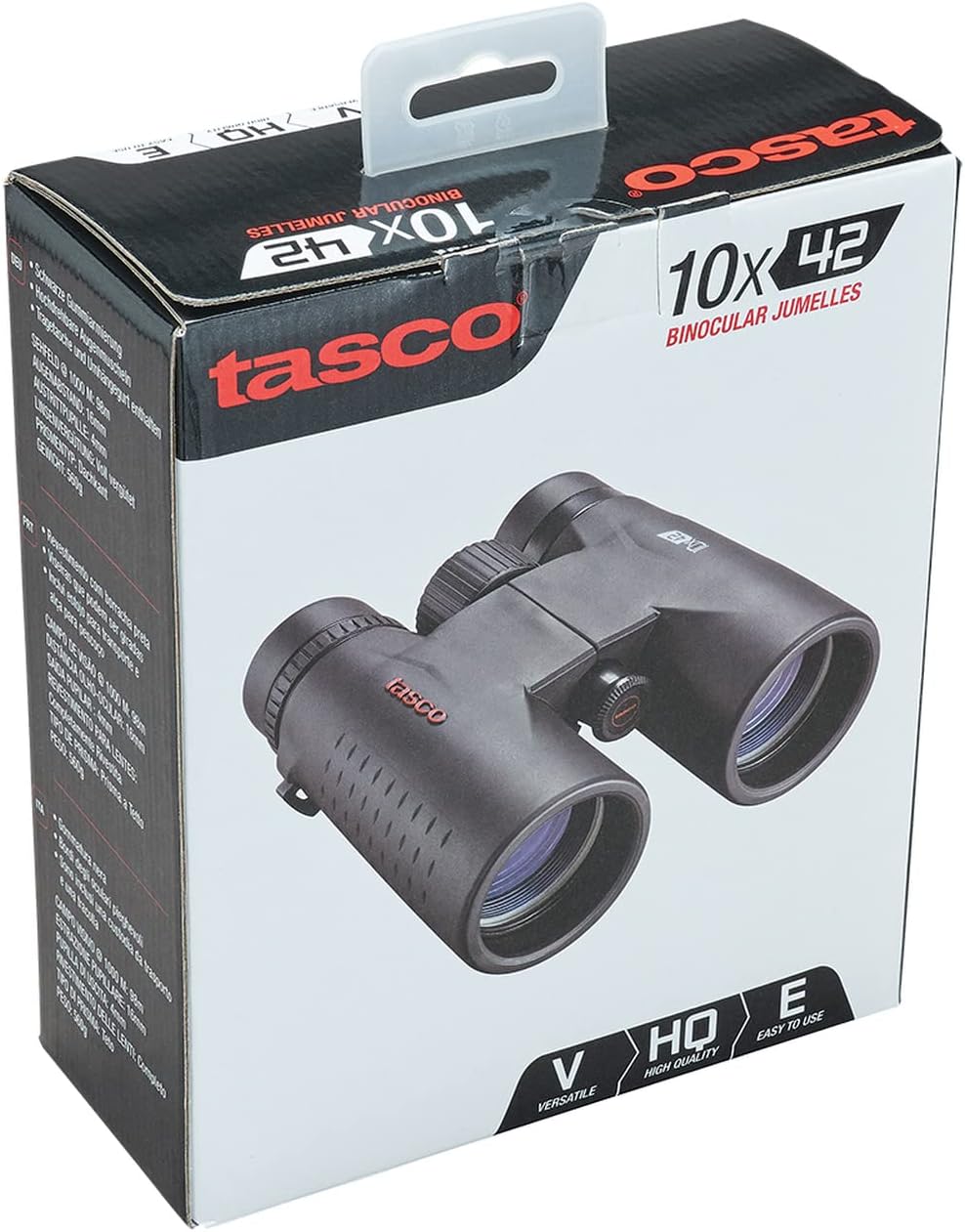 Third in line to food and shelter, a quality pair of binoculars is one of life’s necessities. Tasco essentials binoculars fit the bill for all of your adventures – from a remote camping trip to a Sunday drive. Their multi-coated lenses optimize clarity and brightness, and they’re built with a rugged, weather-resistant housing coated with rubber Armor. The best news is you don’t have to work overtime to own a pair. 10x42mm configuration in a full-size roof Prism design.