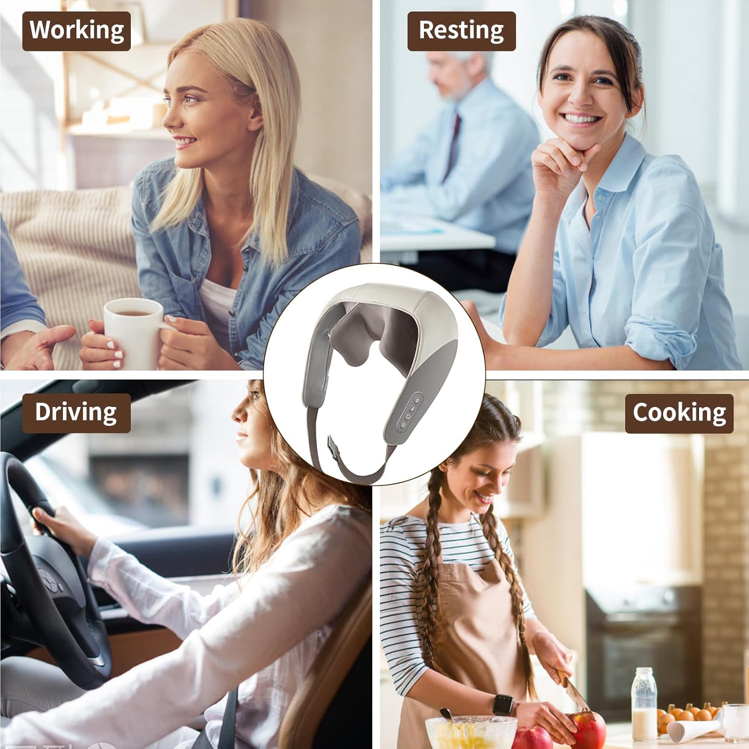 Customized to your needs, this neck massager acts as your personal masseur, saving both time and money. It features a heat function to soothe and warm your neck and shoulders, enhancing the relief of tension. For safety and comfort, it’s designed to automatically power off after 10 minutes of use to prevent overheating, especially when you might fall asleep during relaxation.
