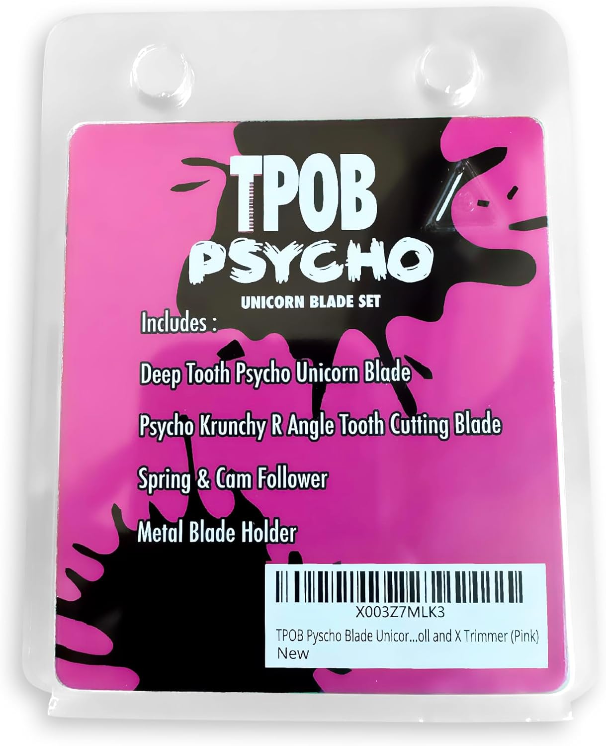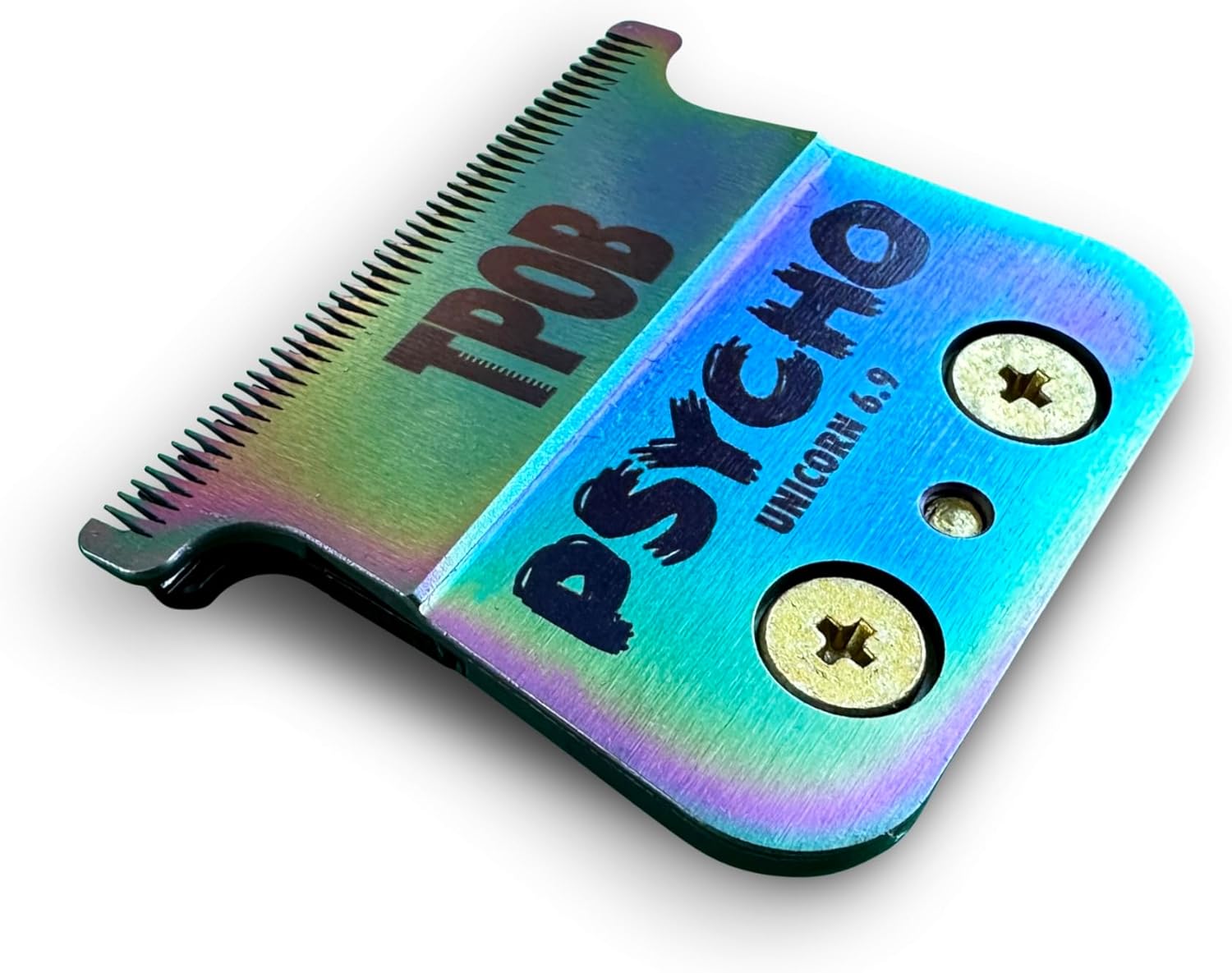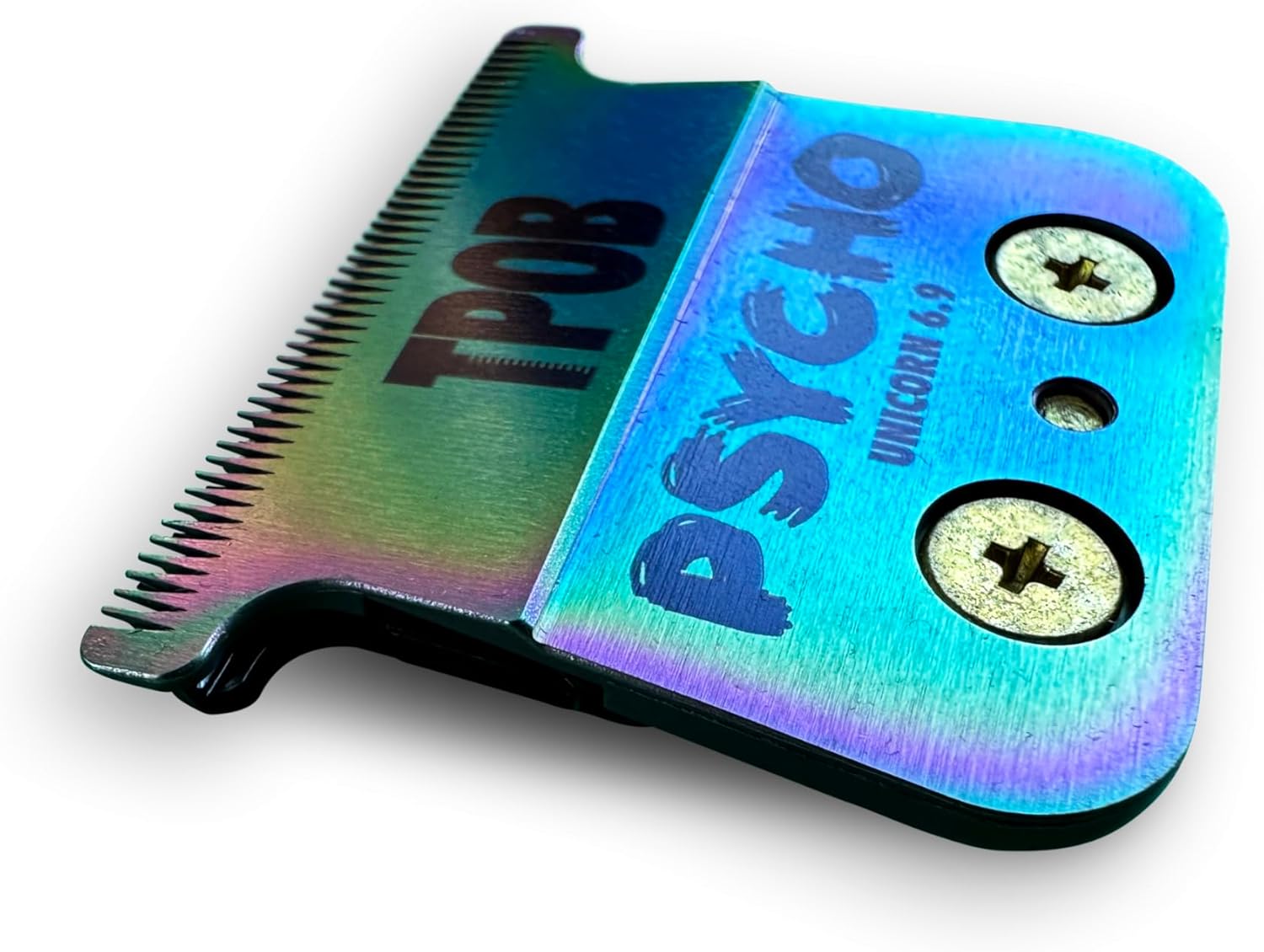 Contains: PSYCHO Unicorn 6.9 Blade Twisted Tooth Krunchy Cutting Blade Cam Follower Spring Metal Blade Saddle Features: 90 Rockwell Hardness Titanium Graphene Coating 1.5mm deep teeth Twisted cutting blade goes through hair smoother than anything on the market
