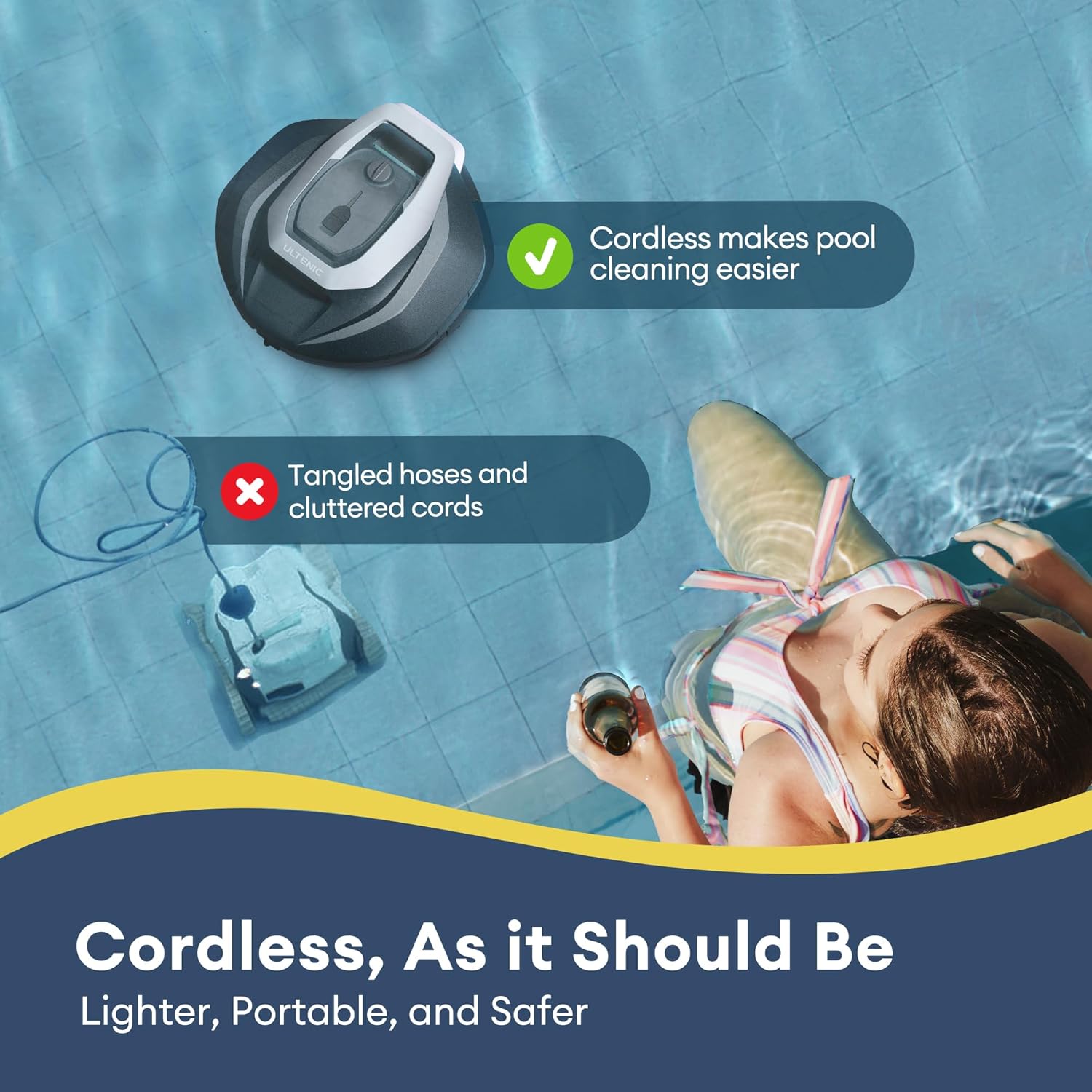 【Cordless Freedom, Zero Hassle 】The Ultenic Cordless pool vacuum eliminates messy hoses! This robot pool vacuum for above ground pools features a dual-motor system delivering 30GPM suction, swiftly removing leaves, pine needles, and debris. Enjoy a spotless pool without tangled cords!