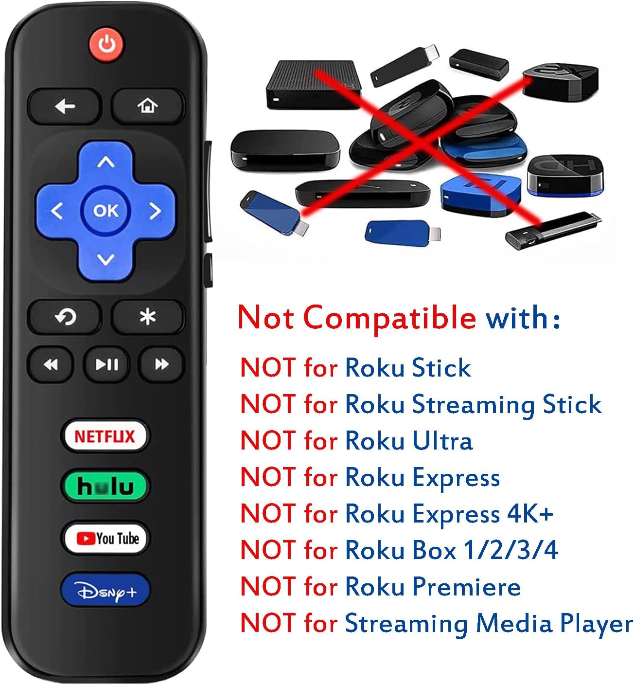 Not Work with: The TV Remote is NOT compatible with RokuStick, RokuStreaming Stick, RokuUltra, RokuExpress, RokuExpress 4K+, RokuBox 1/2/3/4, RokuPremiere or Streaming MediaPlayer, NO voice function, NO headphone jack.