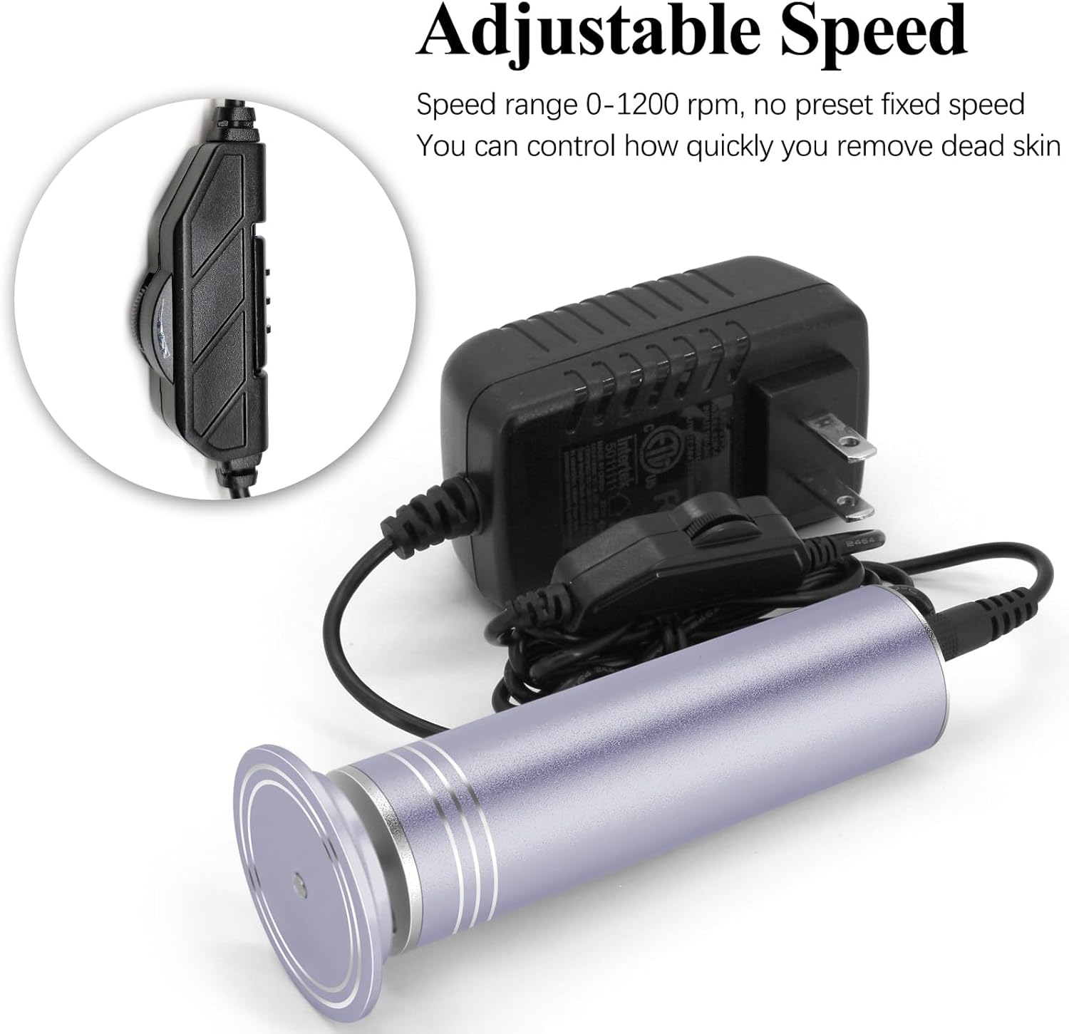 Adjustable speed electric callus remover for feet, speed range 0-1200 rpm, no fixed preset speed. Speed controllable, removes dead skin from feet will not harm healthy skin.