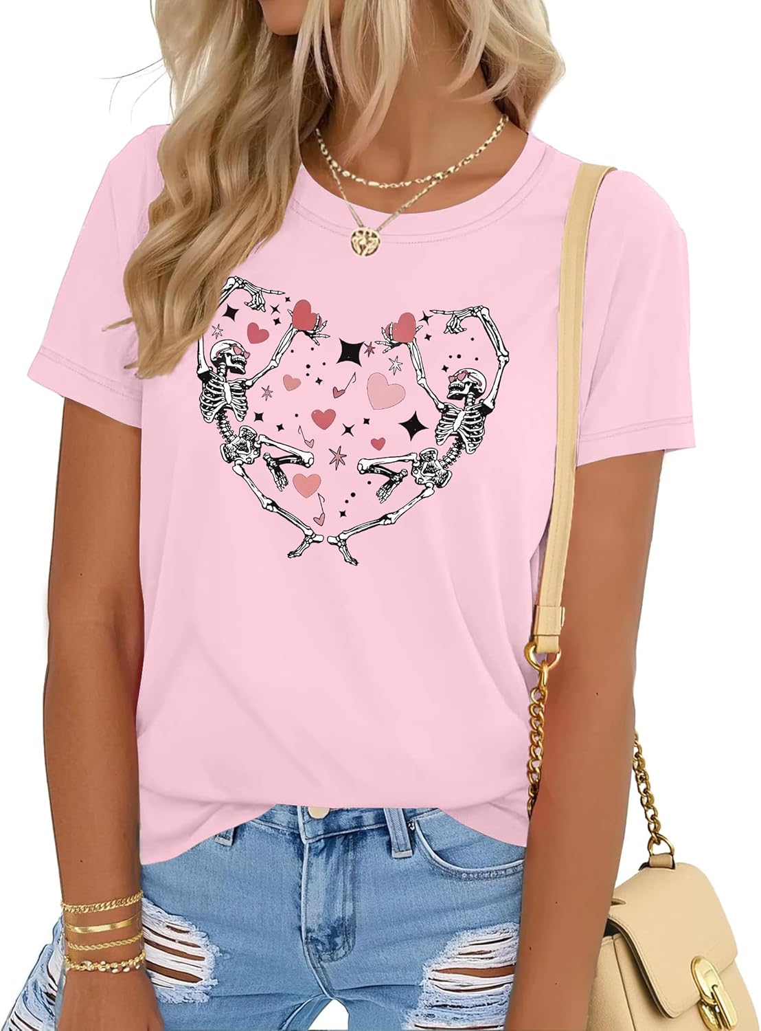 This women’s Valentine skeleton heart t shirt features a bold gothic love graphic that blends romance with edgy style. The skeleton heart design creates a strong visual statement, making it a standout Valentine’s Day shirt for women who love cute, funny, and gothic fashion. Perfect for Valentine parties, date nights, or everyday casual outfits.