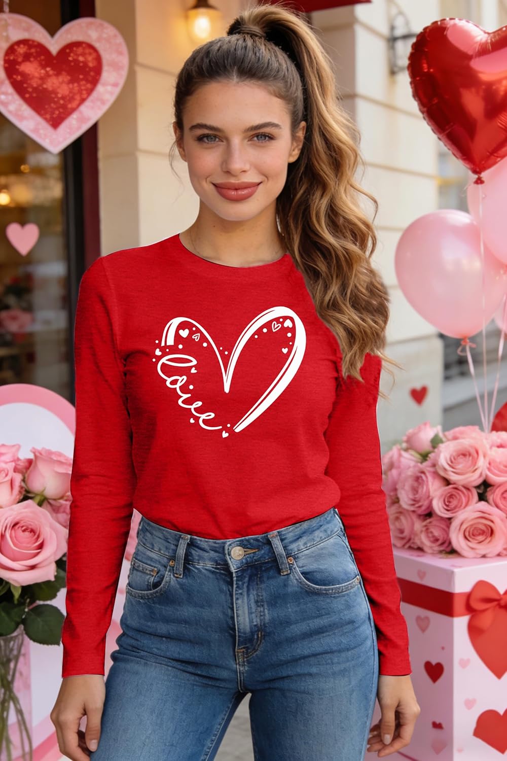 This cute long-sleeve Valentine shirt features a large hand-drawn heart with “love” lettering — full of romantic, playful, and sweet details. Perfect for Valentine’s Day date nights, school events, casual daily outfits, or matching looks with your special someone. Everyday comfort you’ll want to live in.