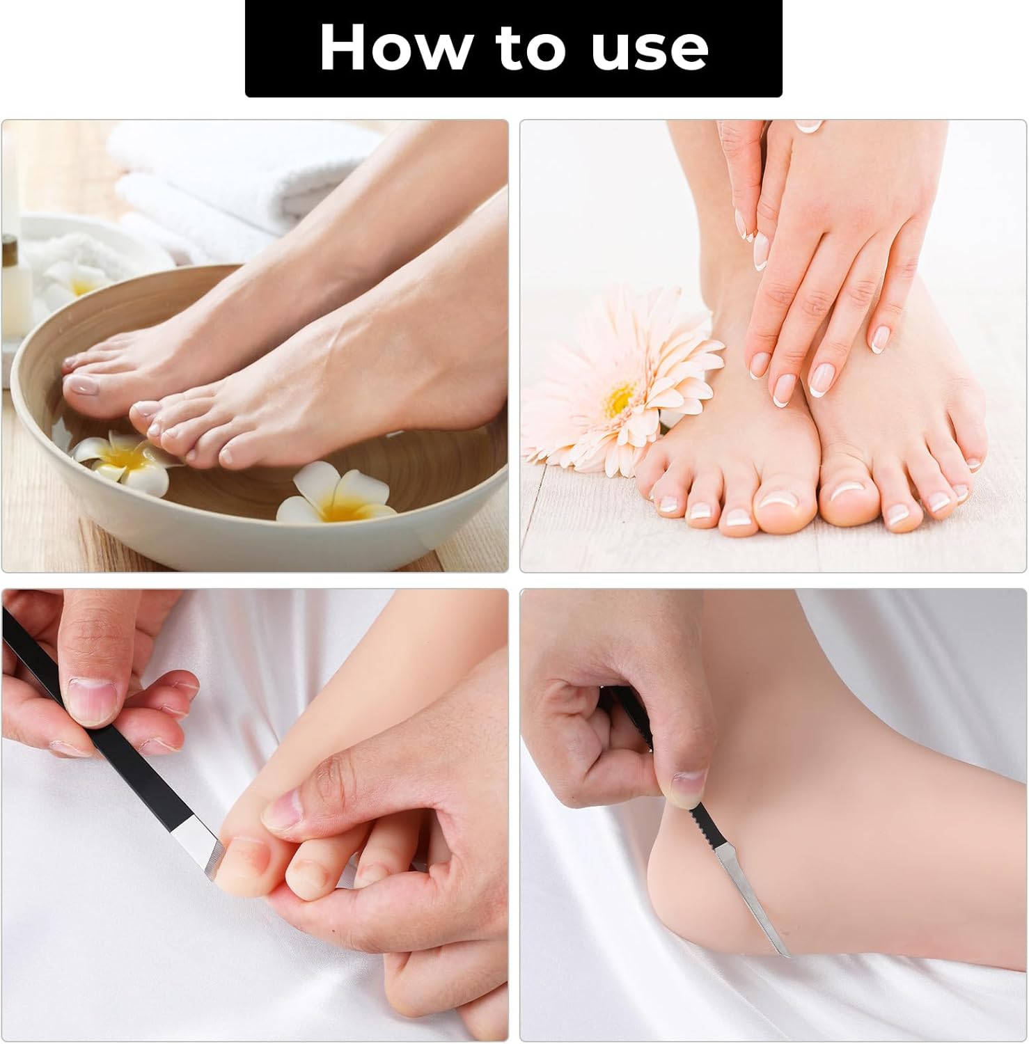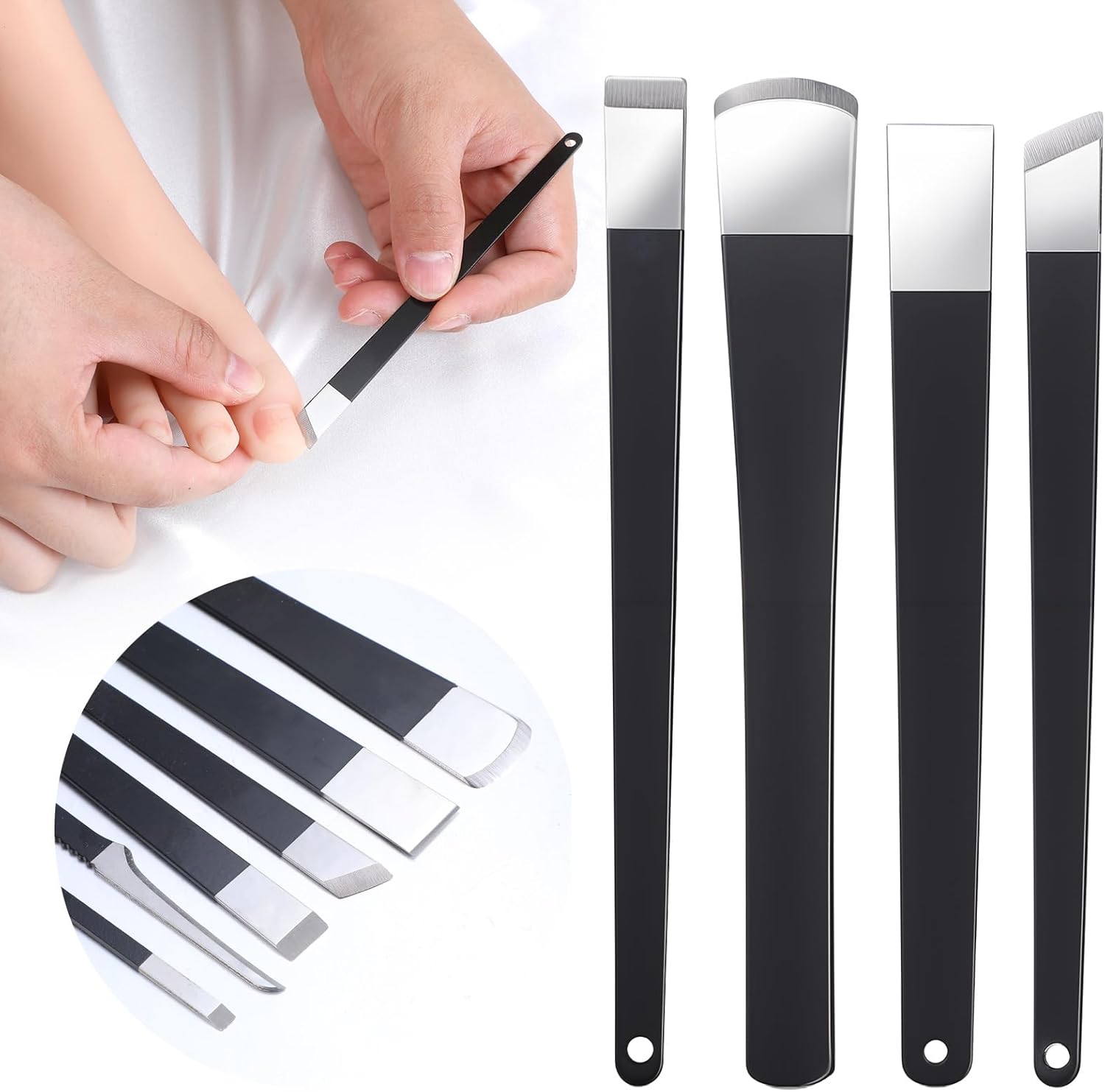 Different Styles: 6 pieces of knives, each knife is designed for accuracy, allowing for detailed work on cuticles and calluses. The flat and slicing knives effectively trim calluses and corns, while the bevel knives remove residual nail material at the base of toenails, making them ideal for treating ingrown nails. Additionally, the scraper knives are perfect for cleaning dirt and debris between the feet and toes, ensuring thorough foot care.