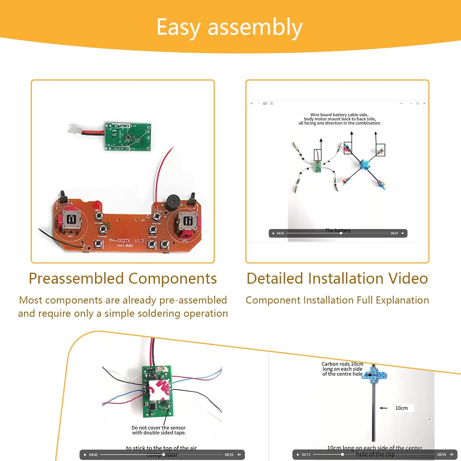In-depth DIY experience: This DIY drone soldering practice kit provides a unique hands-on project for electronic soldering enthusiasts. The entire soldering and assembly process takes 2 hours, allowing you to gain a deeper understanding of the construction and principles of the drone and experience the complete process from parts to finished product. Requires soldering iron, solder, screwdriver, basic knowledge of electronic circuits, and is recommended for ages 14 and up. Difficulty index: 4 stars (out of 5 stars).