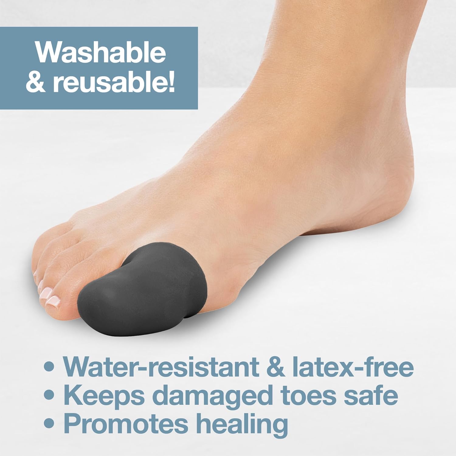 Unlike corn cushions that often slip off, our sheath-style toe protector provides a secure, reliable fit. High quality materials are latex free and washable. Not for use on open or seeping wounds.